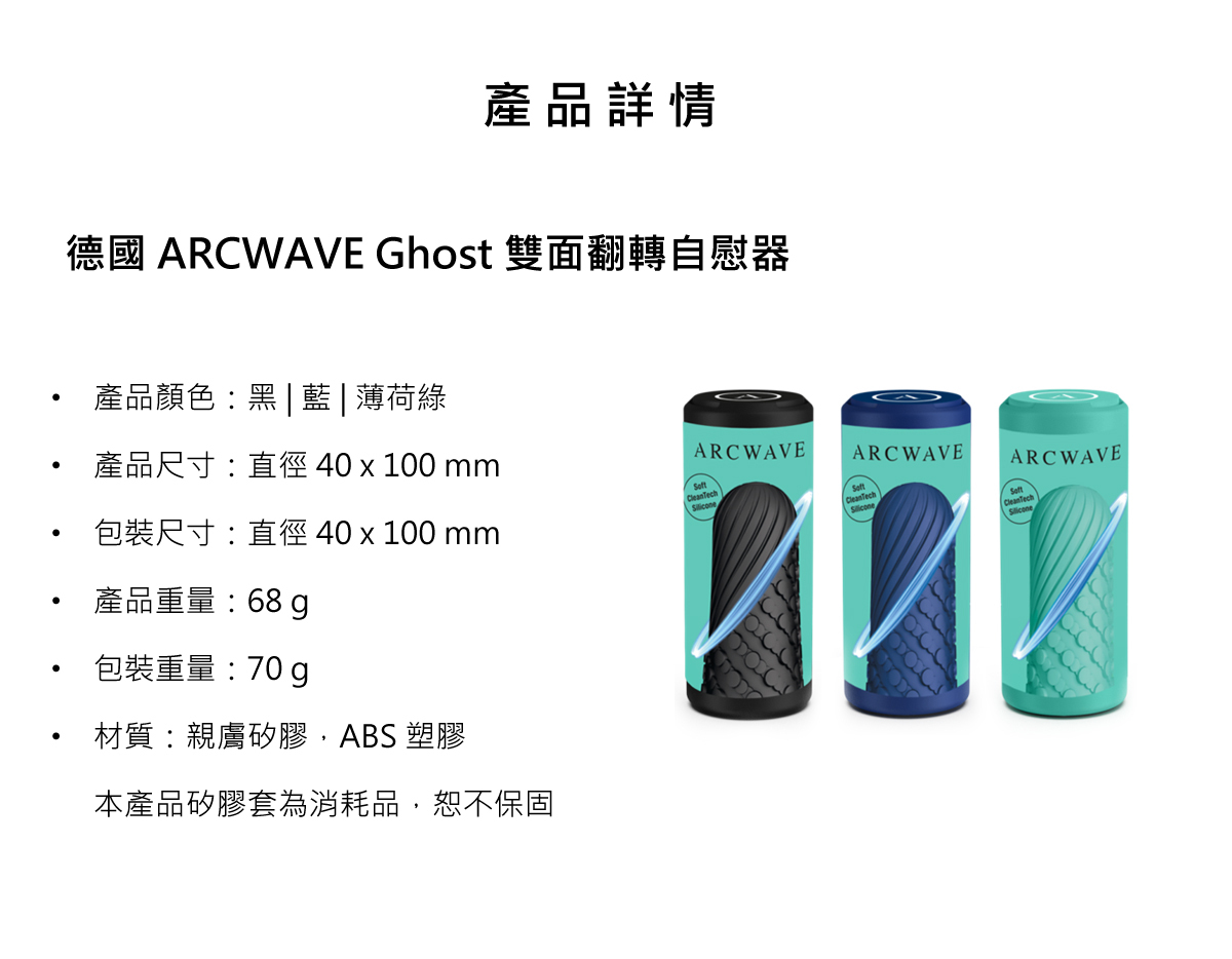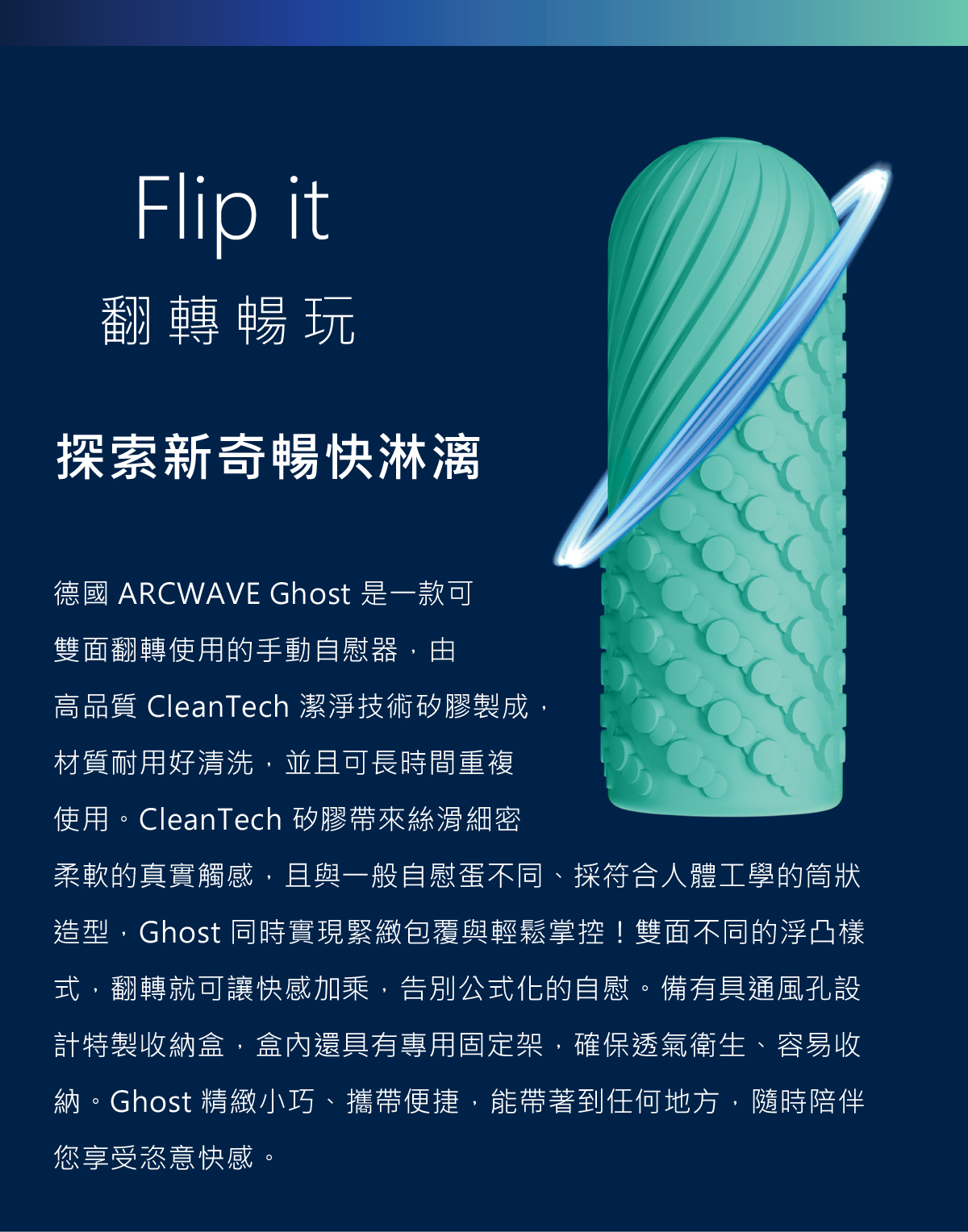 德國 ARCWAVE Ghost 是一款可雙面翻轉使用的手動自慰器,由高品質 CleanTech 潔淨技術矽膠製成,材質耐用好清洗,並且可長時間重複使用。