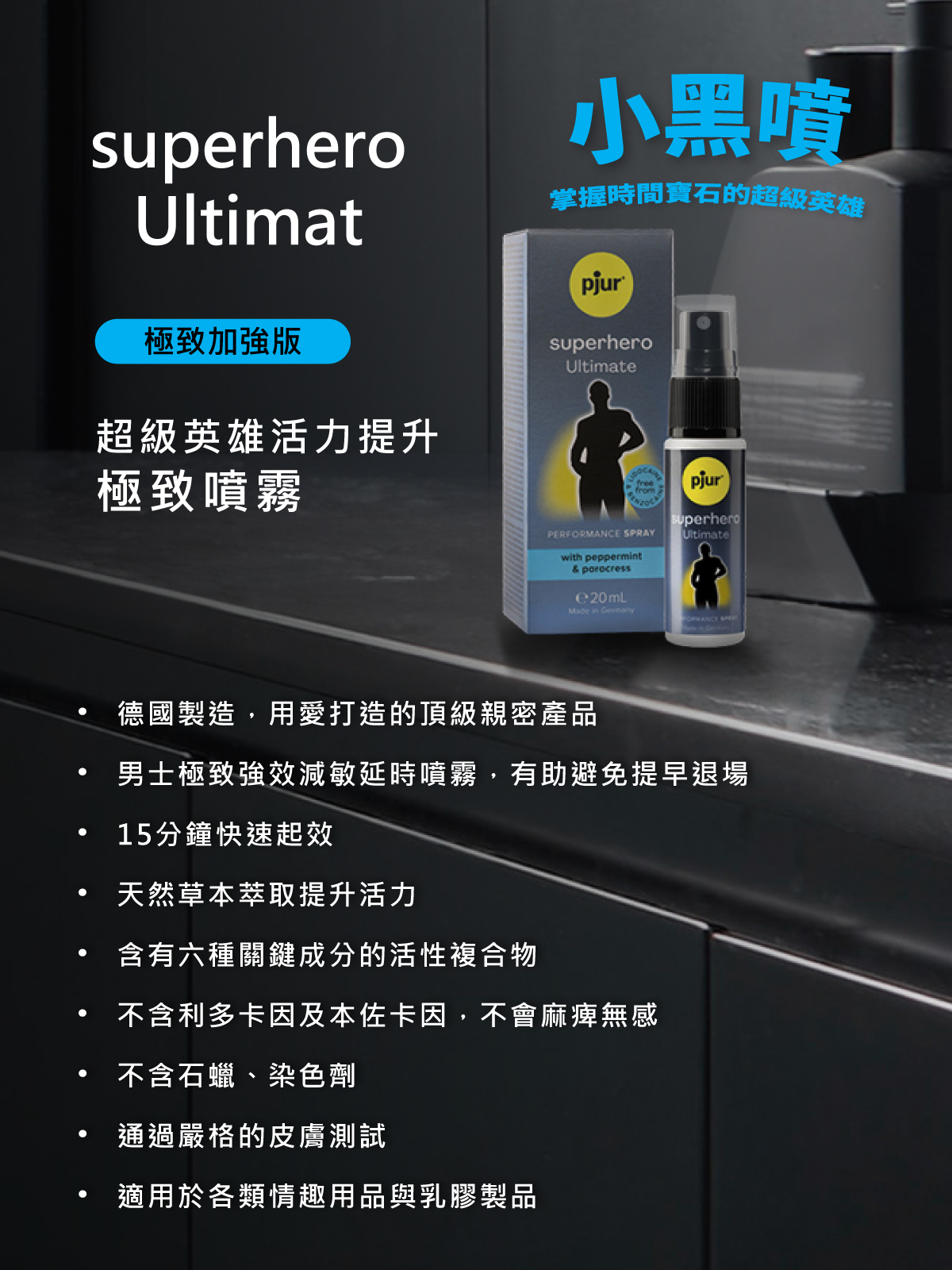 pjur superhero Ultimate Spray 超級英雄活力提升極致噴霧 20ml 點燃慾望引擎🏎️專為男士開發的小黑噴🖤超級英雄噴霧極致版
