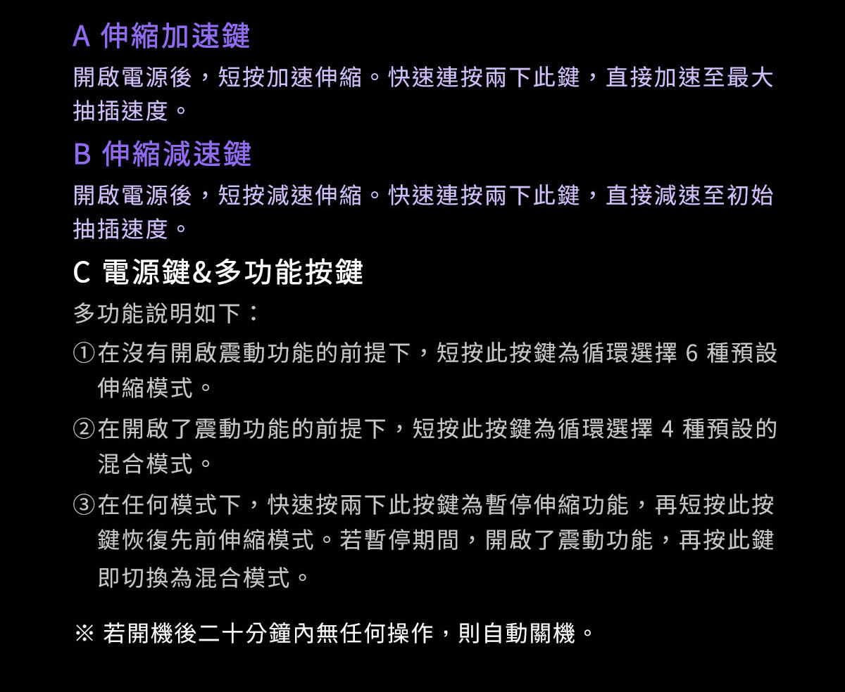 • 7檔伸縮調速、5種震動模式、4種混合模式