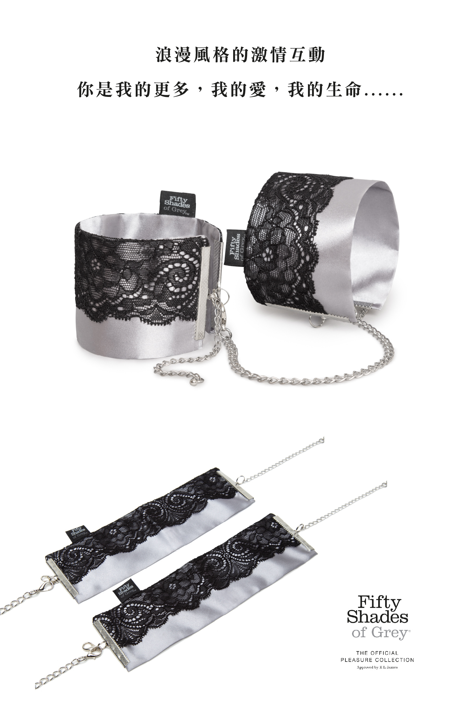 緞面和蕾絲布手銬非常適合束縛初學者;手銬袖口圍度可調節,舒適與安全性十足。