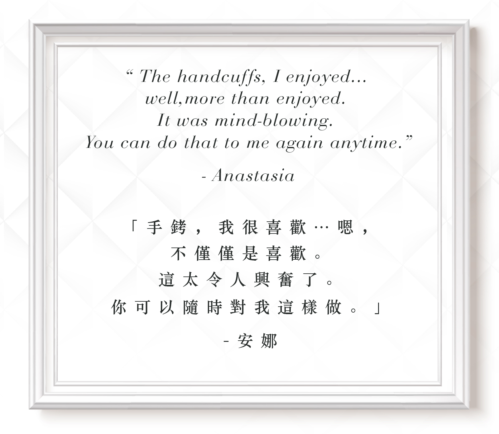 Fifty Shades of Grey 一系列產品致力於讓人們沉浸在小說的奇幻世界中,並以角色扮演、幻想、調皮冒險等方式,提供刺激感官的機會。